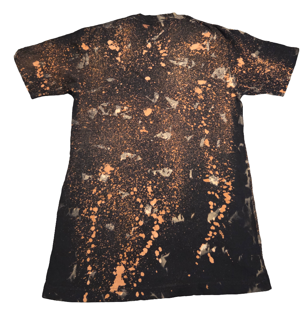 This JEAK trippy t is a signature black tee, expertly designed with a unique bleach spray pattern and available in a small size. Its modern and eye-catching design is sure to make a statement. Made with high-quality materials, perfect for those looking for a stylish and trendy addition to their wardrobe.